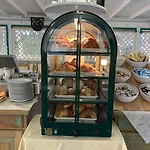 Each morning, this Villasimius hotel serves a buffet breakfast.
